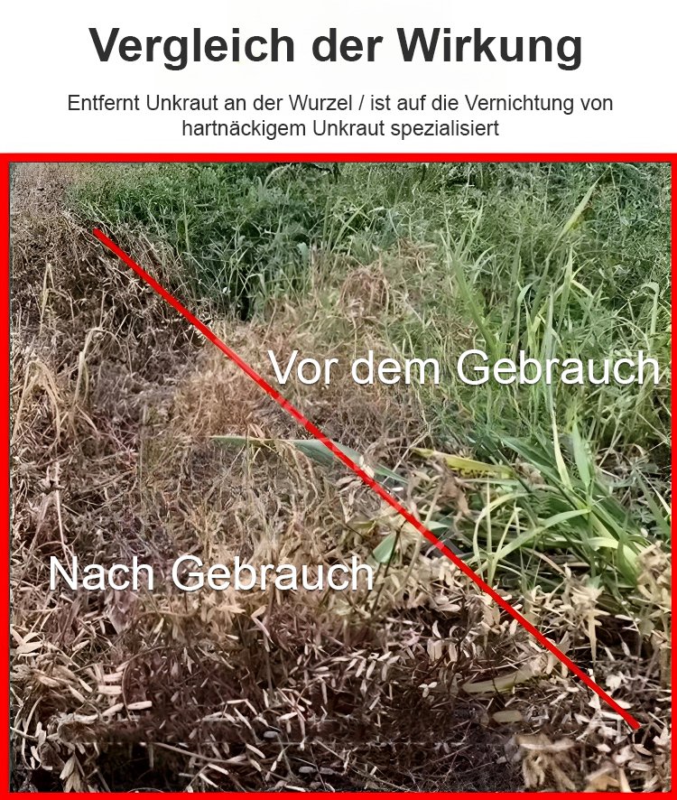 Gründliches Unkrautentfernen, schadet dem Boden nicht, eine Flasche reicht für 3-5 Morgen Land.