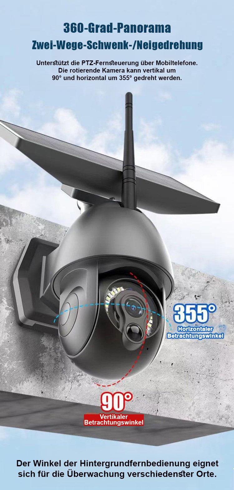 Handy-Fernbedienung Ultra-HD Vollfarb-Nachtsicht Outdoor-Wasserdichte Solarkamera